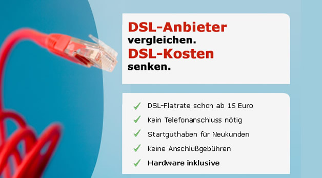 Ein Vergleich der DSL Anbieter, vor Vertragsabschluss kann sich mächtig lohnen. Der Markt der DSL Provider wird immer umkämpfter. DSL Anbieter unterbieten sich pausenlos mit neuen Aktionen, Preisnachlässen und andere Sondertarifen. Mit Hilfe von unserem kostenlosen DSL Tarifvergleich haben Sie als Verbraucher die Chance, vor Vertragsabschluss, die günstigsten und zuverlässigsten DSL Anbieter bequem online zu vergleichen. Sparen Sie monatlich über 30 Euro, dass macht im Jahr eine Ersparnis von 36O Euro und das nur mit Hilfe von 2-3 Mausklicks. Sparen Sie noch heute, und vergleichen Sie alle DSL Anbieter mit unserem großen DSL Tarifvergleich.